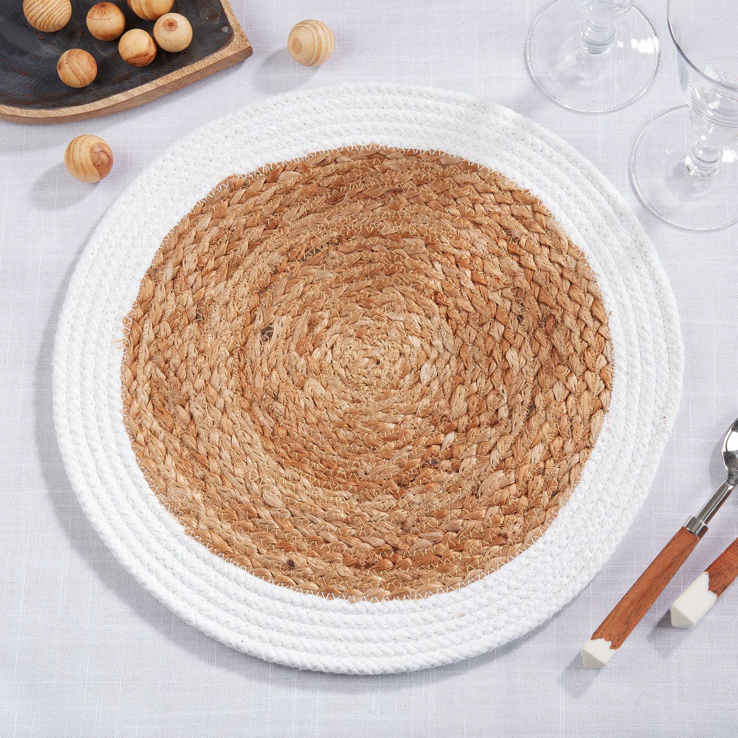 Bring a natural and rustic charm to your dining table with this set of Jute Braided Placemats. Handcrafted with durable jute fibers, its intricate braided design adds texture and character to your table setting. Perfect for casual or formal gatherings, it effortlessly blends style and functionality for a captivating dining experience.