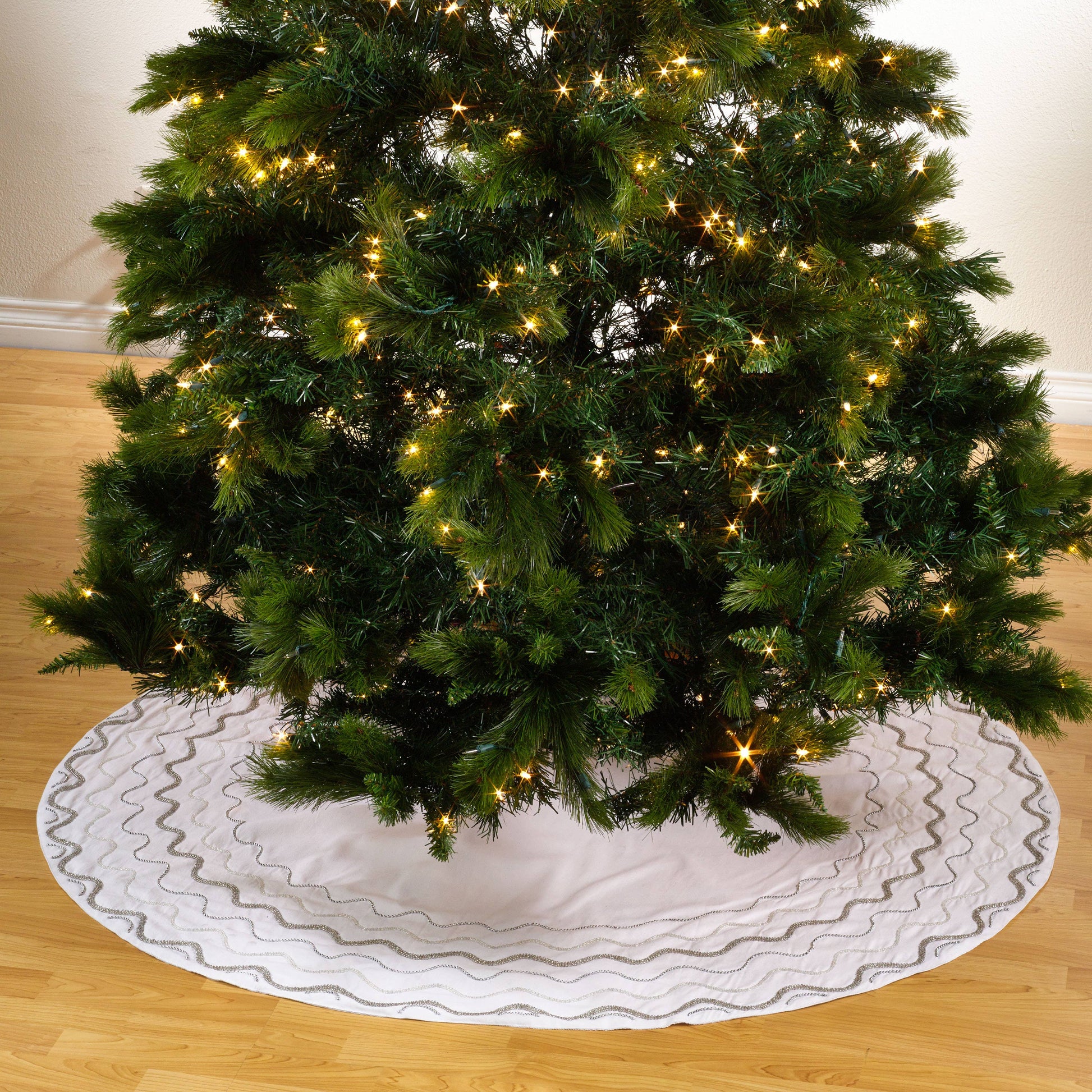 BDD01 - Hand Beaded White 52" Tree Skirt